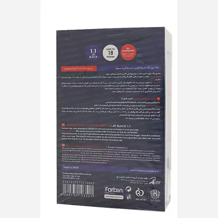 شامپو رنگ مو فاربن مشکی تیره شماره 1.1farben black hair color shampoo
