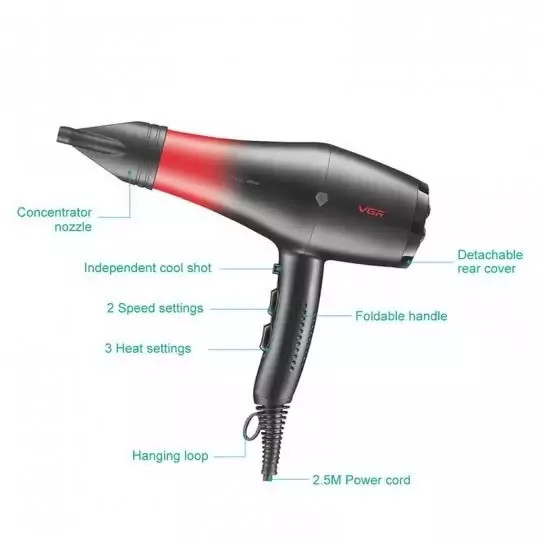 سشوار موتور AC وی جی آر VGR V-462 قرمز مشکی یا مشکی