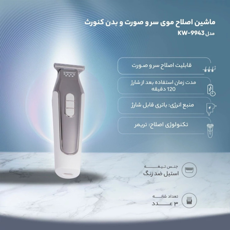 همچنین دارای 3عدد شانه اصلاح از مواد با کیفیت در سایز های 0.5/1/2 میلی متر میباشد