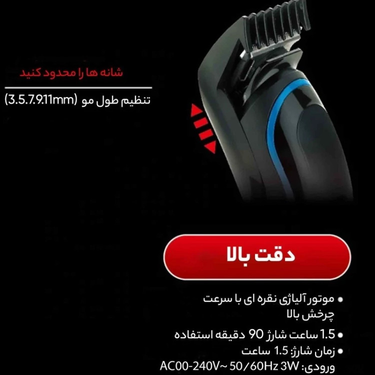 سایز شانهها: 1 عدد شانه قابل تنظیم در 3،5،7،9 و 11 میلی متر
