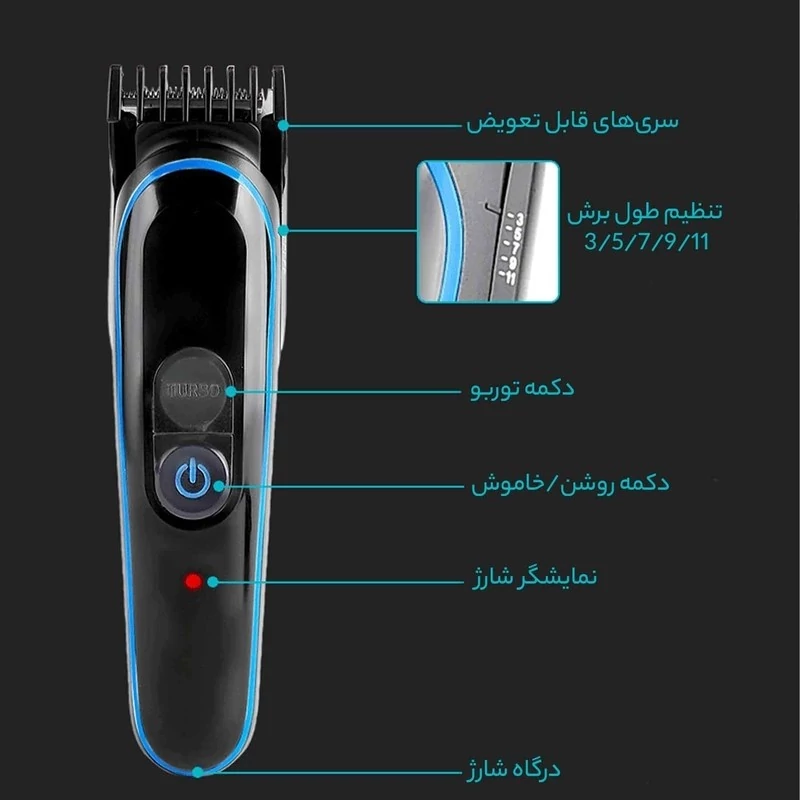 سایز شانهها: 1 عدد شانه قابل تنظیم در 3،5،7،9 و 11 میلی متر