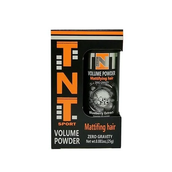پودر مو یا پودر حالت دهنده مو یکی از محصولات حالت دادن به مو میباشد. پودر مو تی ان تی اسپرت یکی از جدیدترین محصولات مو است که برای فرم و استایل دادن به مو استفاده میشود این پودر برای افرادی که موهای نازک و کم حجم دارند گزینه مناسبی بوده و بعد از استفاده حجم و حالت موها را بهتر نشان خواهد داد. ترکیبات سیلیکونی که در پودر مو تی ان تی اسپرت وجود دارد هنگام تماس با ریشه مو، چربی و رطوبت مو را جذب می کند و حالتی مات در موهای شما به وجود می آورد و بخاطر اینکه بر روی ریشه موها قرار میگیرد، موها را از قسمت ریشه حجم دار میکند و حالت میدهد. این پودر حجم دهنده مو علاوه بر عموم مردم برای آرایشگران نیز بسیار محبوب می باشد.