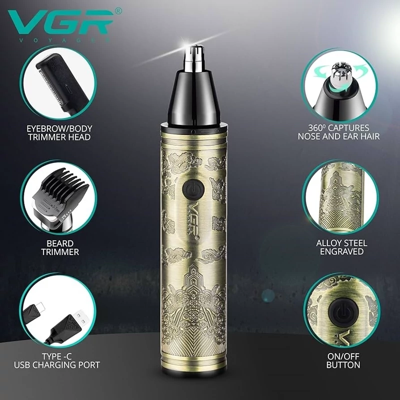 ماشین اصلاح چندکاره وی جی آر مدل VGR-620 یک ابزار همهمنظوره و کاربردی است که برای اصلاح موی صورت، گوش، بینی و ابرو طراحی شده است. این مدل با سریهای مختلف و تیغههای استیل ضدزنگ، دقت بالا و ایمنی کامل را هنگام استفاده فراهم میکند. طراحی سبک، باتری قدرتمند و قابلیت پاکسازی آسان، این محصول را به گزینهای مناسب برای استفاده روزانه و حرفهای تبدیل کرده است.